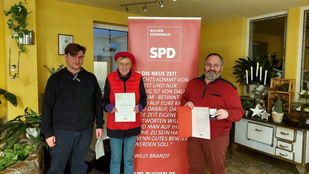 Im Rahmen einer SPD-Mitgliederversammlung zum Jahresausklang konnten wie immer zahlreiche Mitglieder für langjährige Mitgliedschaft und andere Verdienste geehrt werden. Eine Ehrungen stach jedoch besonders hervor. Alexander Weinlein erhielt die Willy-Brandt-Medaille für sein langjähriges Engagement, auch über die Partei hinaus.