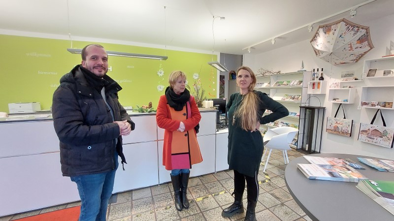 Bei der Tourist-Information am Marktplatz inspizierte er die E-Bike Ladesäule. Er erfuhr, dass diese auch von Besuchergruppen, die mit dem Rad unterwegs seien, stark genutzt wird. Um auch den Tourismus im Landkreis zu fördern, benötigt es jedoch mehr Ladesäulen, deren Standorte bekannt sein müssen. Sichere Radabstellplätze könnten zudem die Attraktivität mancher Orte erhöhen.
