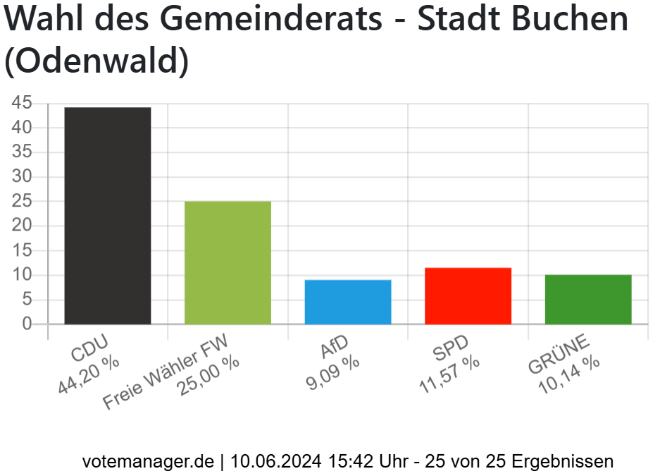 Hier wird der Vergleich etwas schwieriger, da wir bei der letzten Gemeinderatswahl mit der Mischliste SPD/Grün-Links.Bündnis für Buchen angetreten sind.