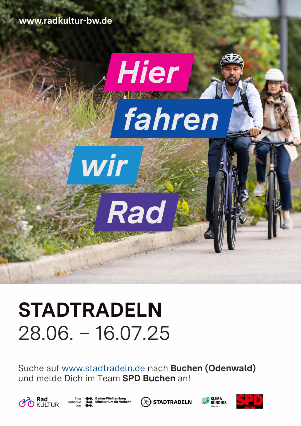 Eine Anmeldung, unabhängig von der Mitgliedschaft, ist über die Homepage vom Stadtradeln möglich. Noch einfacher ist es in der App unser Team "SPD Buchen" zu suchen und anzuklicken.